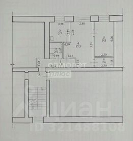 общая площадь - 43,4 кв.м.; площадь кухни -5.7кв.м; жилая площадь -27.3; застекленный балкон; - комнаты проходные; - санузел совмещен; - высота потолков 2.7 метра;