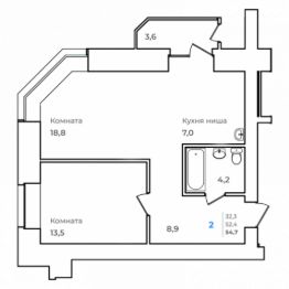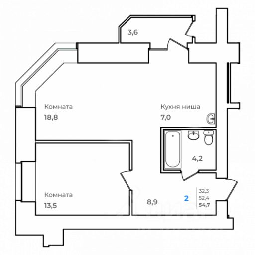 Общая площадь54,7 м²
