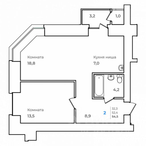 54,5 м²