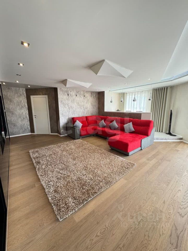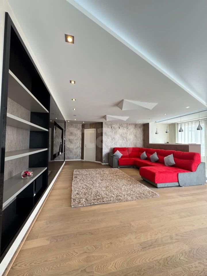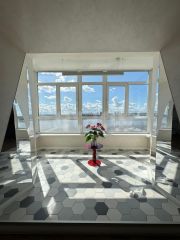 Квартира: пять комнат, кухня-столовая, два санузла, бытовая комната, четыре балкона с панорамными окнами.