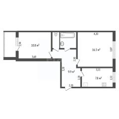 Если мечтаете о великолепной кухне-гостиной, то можно соединить кухню (7 кв.м) и рядом комнату (16,8кв.м). Санузел раздельный.