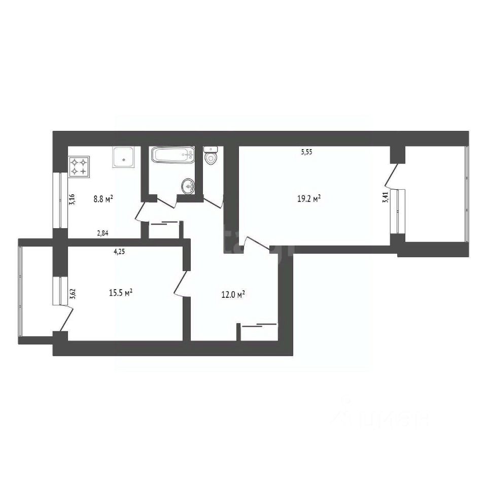 - Окна квартиры выходят на две стороны.