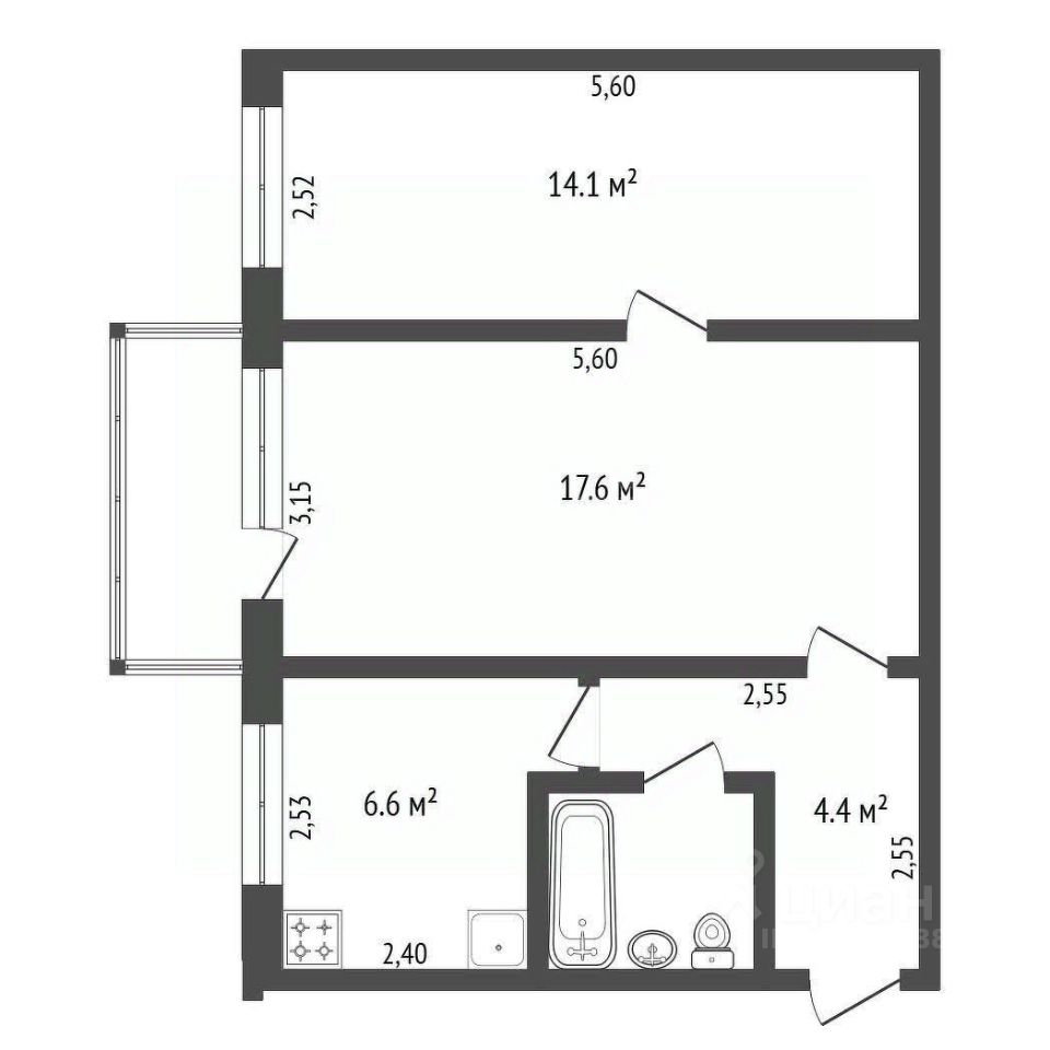 Практичная планировка с изолированными комнатами обеспечивает комфортное проживание для семьи или пары.