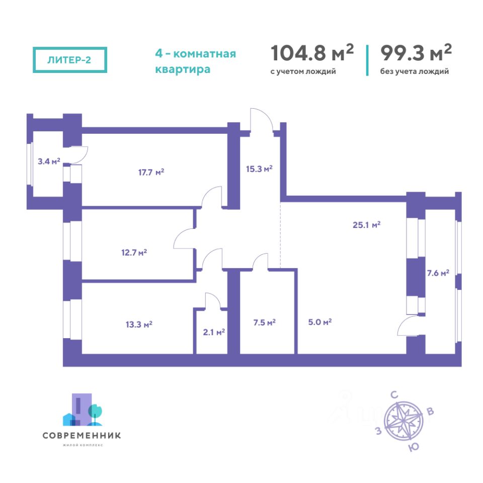 Предлагаем к продаже 4-х комнатную квартиру от ЗАСТРOЙЩИКА в сданном доме!