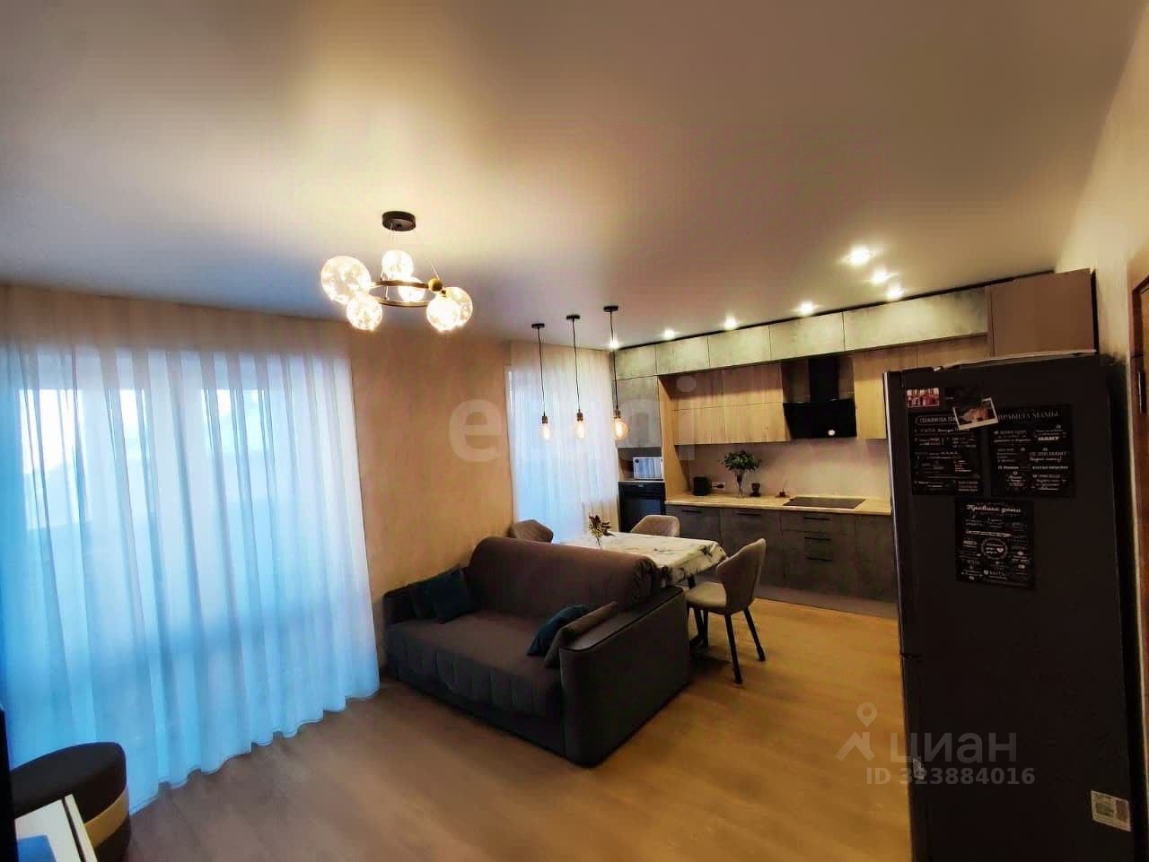 * просторная, удобная и светлая кухня-гостиная, площадью 22 кв. м;