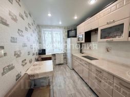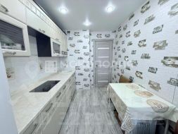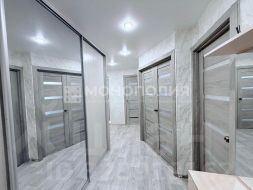 В квартире выполнен косметический ремонт, в коридоре и кухне - натяжные потолки, выполнена замена всех межкомнатных дверей. На полах уложен линолеум.