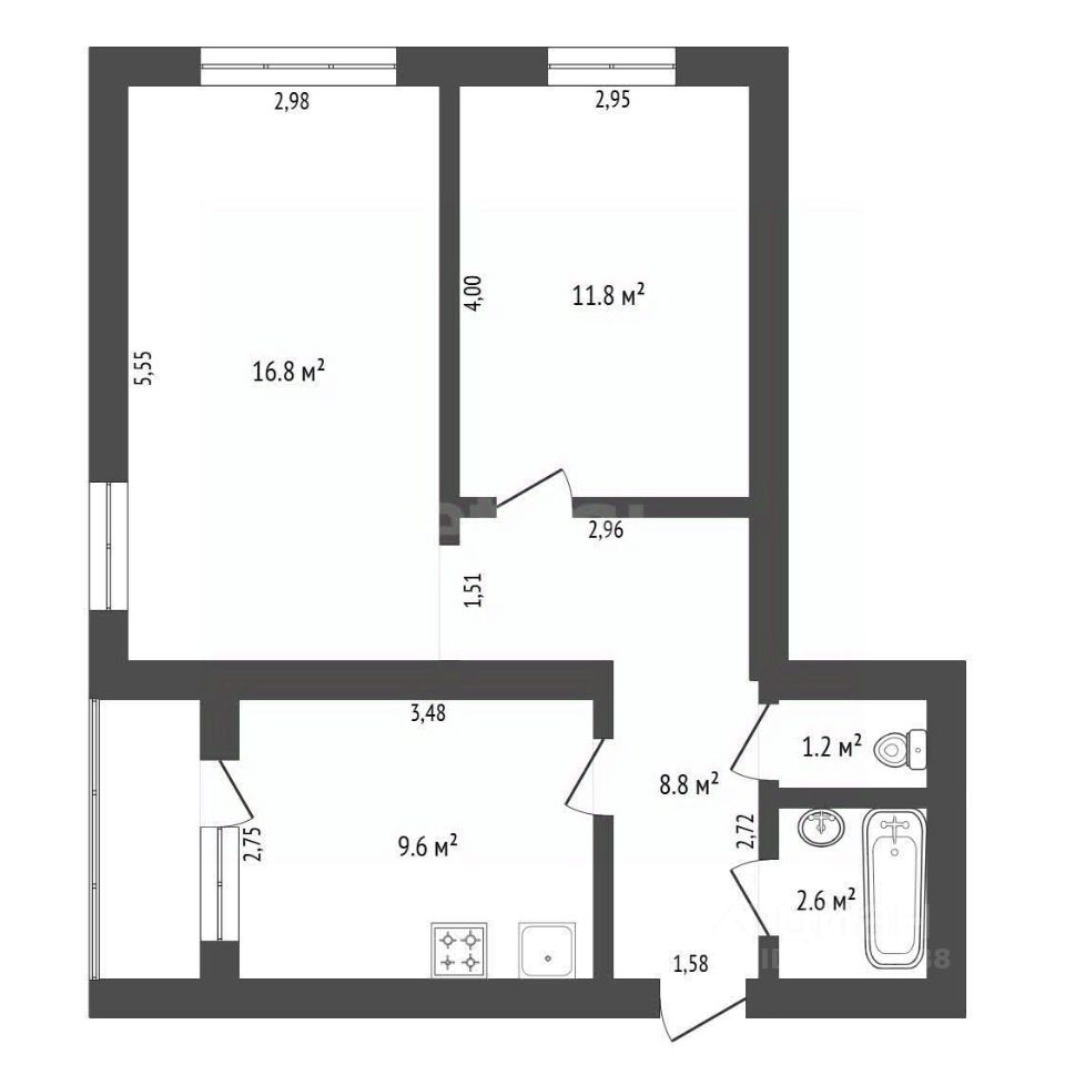 . Окна выходят на две стороны, обеспечивая постоянное естественное освещение и хорошую перевариваемость помещений.