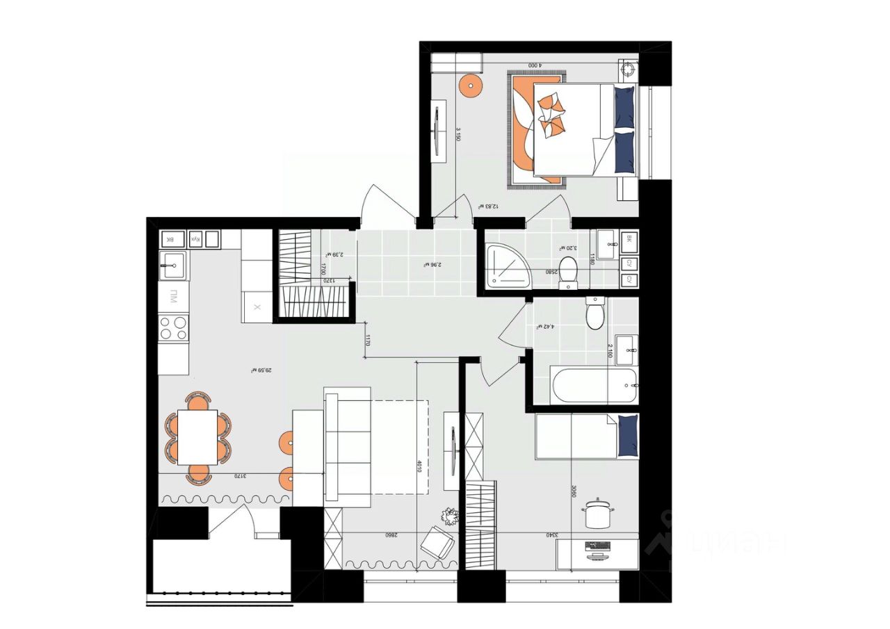 Более 20 планировок квартир с теплыми лоджиями, увеличенной высотой потолков, в черновой/предчистовой отделке.