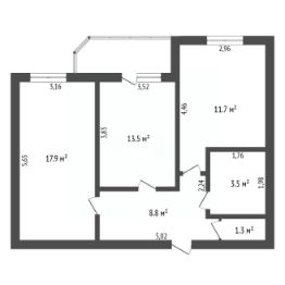 - Площадь: 56.7 м² (4 этаж, удобная этажность)