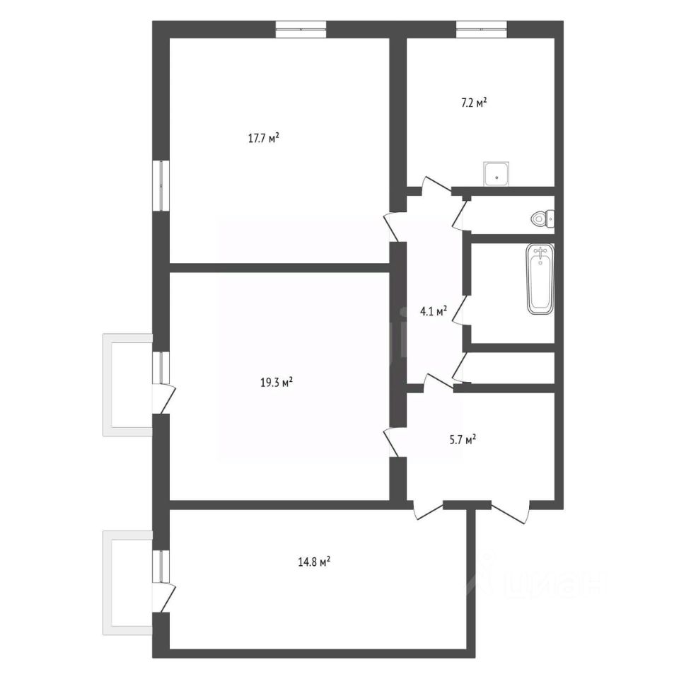 Санузел: Раздельный, но требует капитального ремонта. Это дополнительная возможность для личного подбора стиля и бюджета.