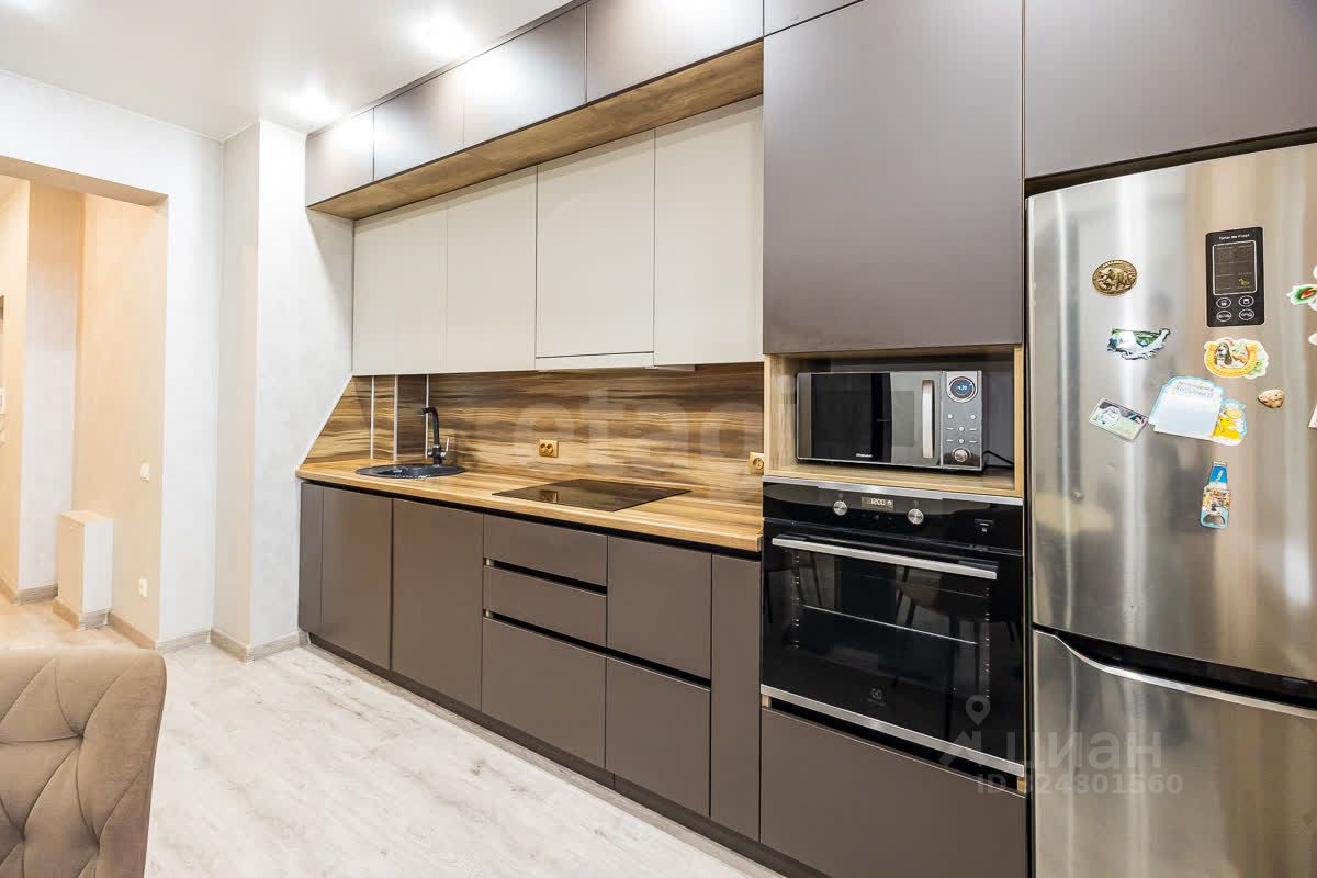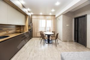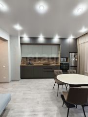 Полная комплектация: Квартира укомплектована кухонным гарнитуром со встроенной техникой, встроенными шкафами в детской и спальне, кондиционером и звукоизоляцией потолка.