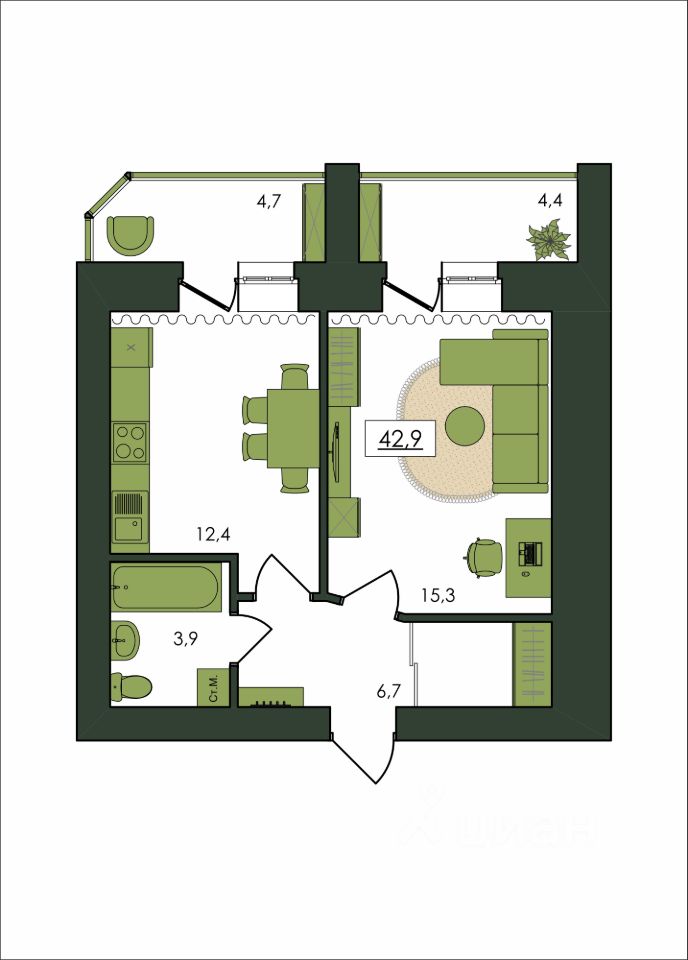 Продаётся 1-комнатная квартира в строящемся доме (Дом 1), срок сдачи: I-кв. 2028, общей площадью 42.9 кв.м., на 4 этаже. Новый жилой комплекс "Клевер" от Специализированного застройщика "Амурком" расположен в г. Благовещенск Амурской области в границах улиц Театральная - Ломоносова - Политехническая - Северная.