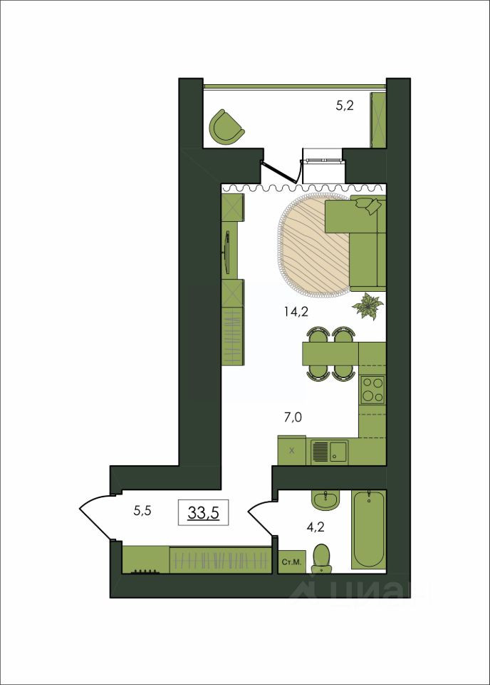 Продаётся 1-комнатная квартира в строящемся доме (Дом 1), срок сдачи: I-кв. 2028, общей площадью 33.5 кв.м., на 8 этаже. Новый жилой комплекс "Клевер" от Специализированного застройщика "Амурком" расположен в г. Благовещенск Амурской области в границах улиц Театральная - Ломоносова - Политехническая - Северная.