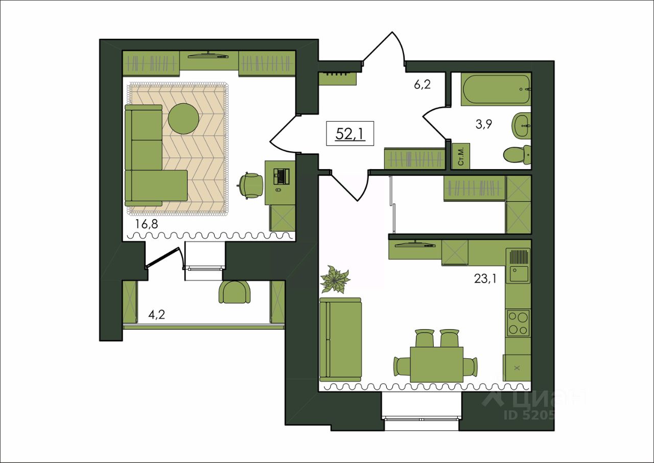Продаётся 1-комнатная квартира в строящемся доме (Дом 1), срок сдачи: I-кв. 2028, общей площадью 52.1 кв.м., на 3 этаже. Новый жилой комплекс "Клевер" от Специализированного застройщика "Амурком" расположен в г. Благовещенск Амурской области в границах улиц Театральная - Ломоносова - Политехническая - Северная.