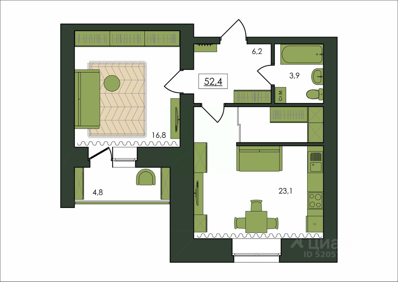 Продаётся 1-комнатная квартира в строящемся доме (Дом 1), срок сдачи: I-кв. 2028, общей площадью 52.4 кв.м., на 5 этаже. Новый жилой комплекс "Клевер" от Специализированного застройщика "Амурком" расположен в г. Благовещенск Амурской области в границах улиц Театральная - Ломоносова - Политехническая - Северная.