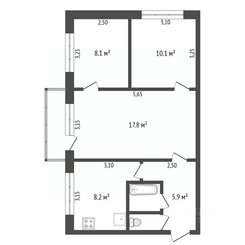 Площадь: 53,5 м²