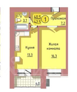 Площадь квартиры с холодными помещениями 42,80 кв.м.,