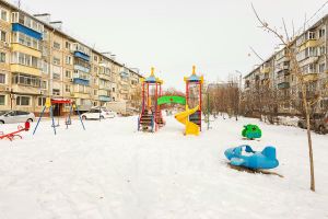 Дворовая территория грамотно спланирована, заасфальтирована, имеет большое количество парковочных мест и огромную детскую игровую площадку.