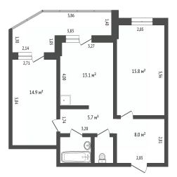 Площадь: 71.5 кв.м (с утеплённой лоджией) места хватит для всей семьи!