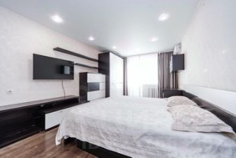 Квартира полностью укомплектована всем необходимым для комфортного проживания: места хранения, кровать с подъемным механизмом, телевизор, кухонный гарнитур с техникой, обеденная зона, кондиционер, стиральная машина, водонагреватель.