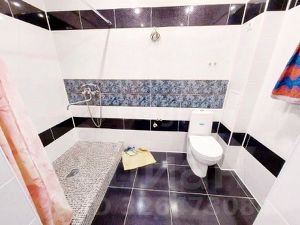 Большой совмещённый санузел с душевой зоной.