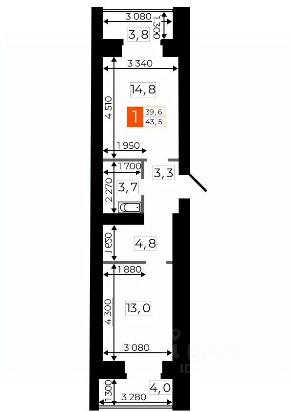 43,3 м²