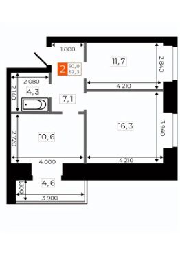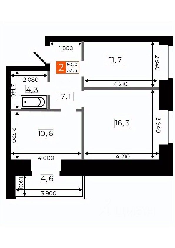 Общая площадь52,2 м²