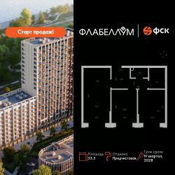 Продаётся 3-к квартира номер 89 общей площадью 53.5 кв.м. на 10-м этаже 16 этажного здания. Отделка Whitebox.