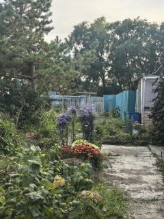 Во дворе выделен участок для плодово-ягодных насаждений. Двор закрыт со всех сторон забором из профлиста.