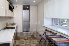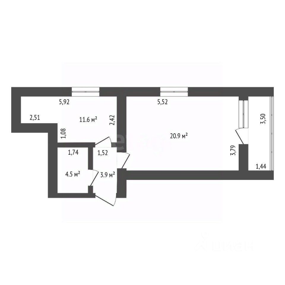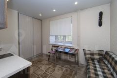 Просторная комната с двумя окнами позволяет сделать зонирование. В кухне есть просторная кладовая,которую можно использовать и как гардеробную.