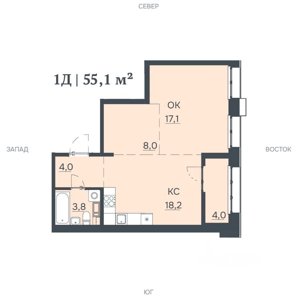 Продаётся 1-комнатная квартира в строящемся доме (Литер 2), срок сдачи: IV-кв. 2028, общей площадью 55.1 кв.м., на 7 этаже. ЖК "Ленинград" - это жилой квартал бизнес-класса, новая классика городской жизни, в которой сочетаются престиж, стиль и современный ритм.