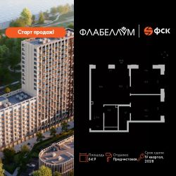 Продаётся 3-к квартира номер 46 общей площадью 64.9 кв.м. на 5-м этаже 16 этажного здания. Отделка Whitebox.
