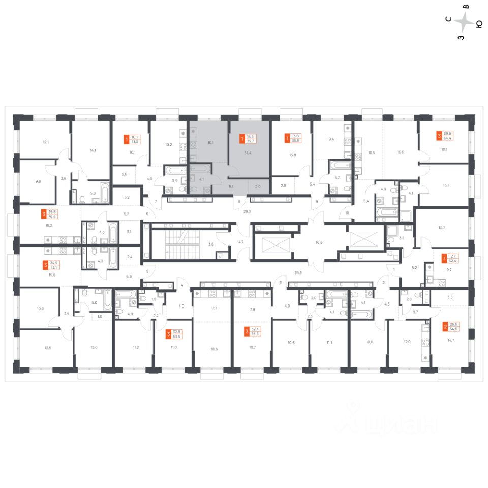 Продаётся 1-к квартира номер 14 общей площадью 35.7 кв.м. на 2-м этаже 16 этажного здания. Отделка Whitebox.
