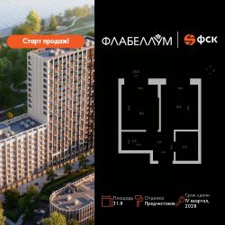 Продаётся 1-к квартира номер 113 общей площадью 31.8 кв.м. на 12-м этаже 16 этажного здания. Отделка Whitebox.