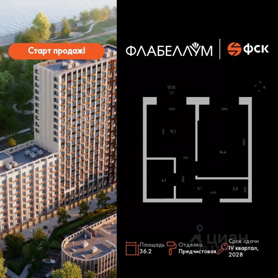 Продаётся 1-к квартира номер 104 общей площадью 36.2 кв.м. на 11-м этаже 16 этажного здания. Отделка Whitebox.