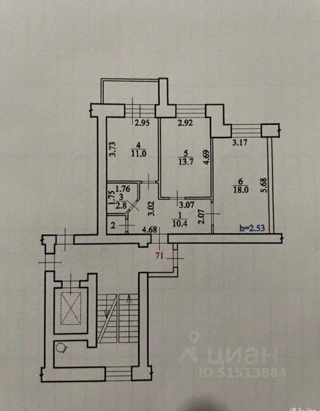 Общая площадь57,1 м²