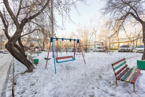 Прилегающая территория благоустроена: двор отличается спокойной атмосферой, озеленен и оборудован двумя современными детскими площадками.