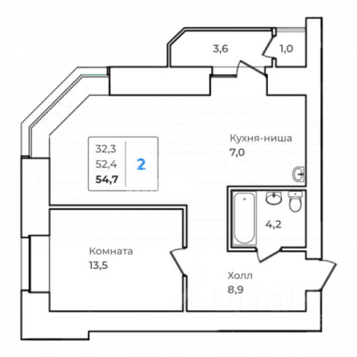 На балконе предусмотрено техническое помещение под блок кондиционера.