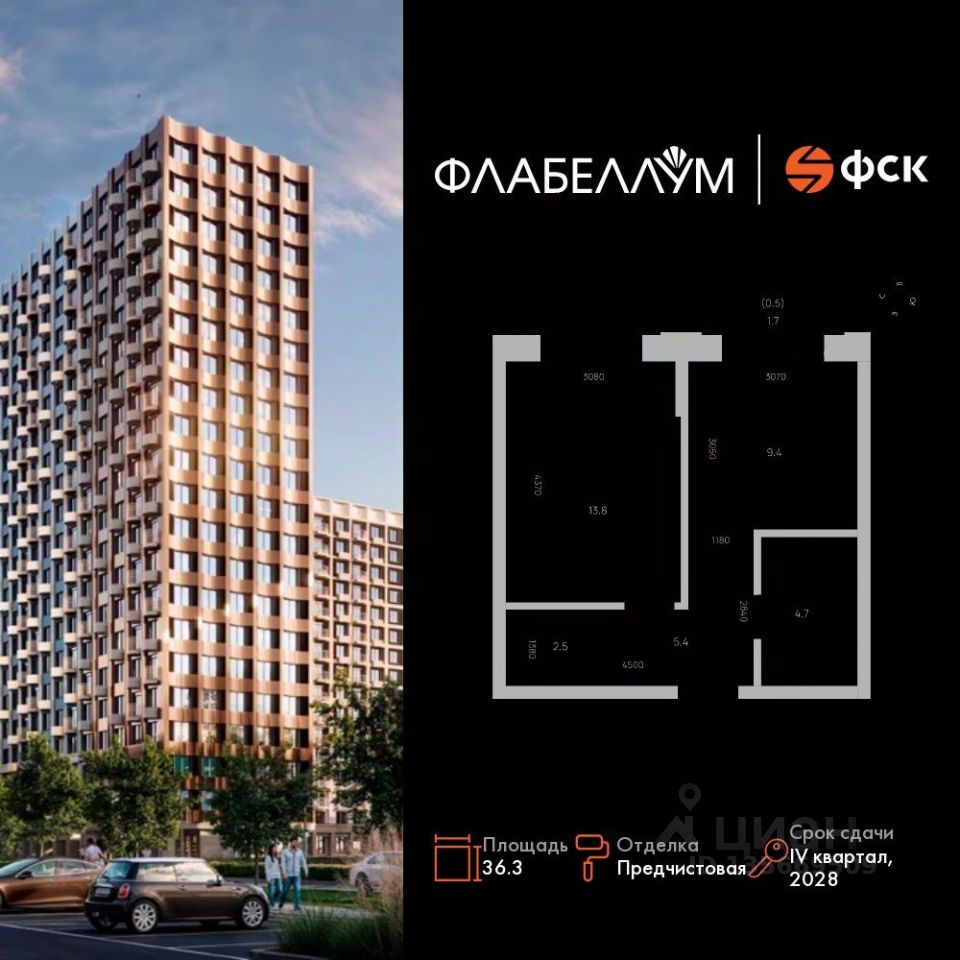 Продаётся 1-к квартира номер 85 общей площадью 36.3 кв.м. на 9-м этаже 16 этажного здания. Предчистовая отделка.