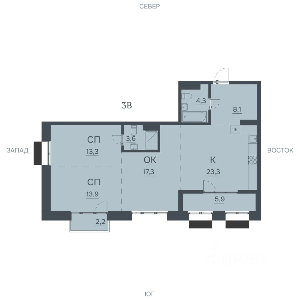 Продаётся 3-комнатная квартира в строящемся доме (Литер 2), срок сдачи: IV-кв. 2028, общей площадью 91.9 кв.м., на 3 этаже. ЖК "Ленинград" - это жилой квартал бизнес-класса, новая классика городской жизни, в которой сочетаются престиж, стиль и современный ритм.