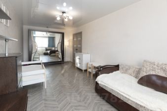 Жилая зона и кухня оформлены в светлом едином стиле, а наличие лоджии добавляет дополнительное пространство для отдыха. Встроенная мебель и техника остаются новым владельцам, поэтому можно сразу заезжать и жить.