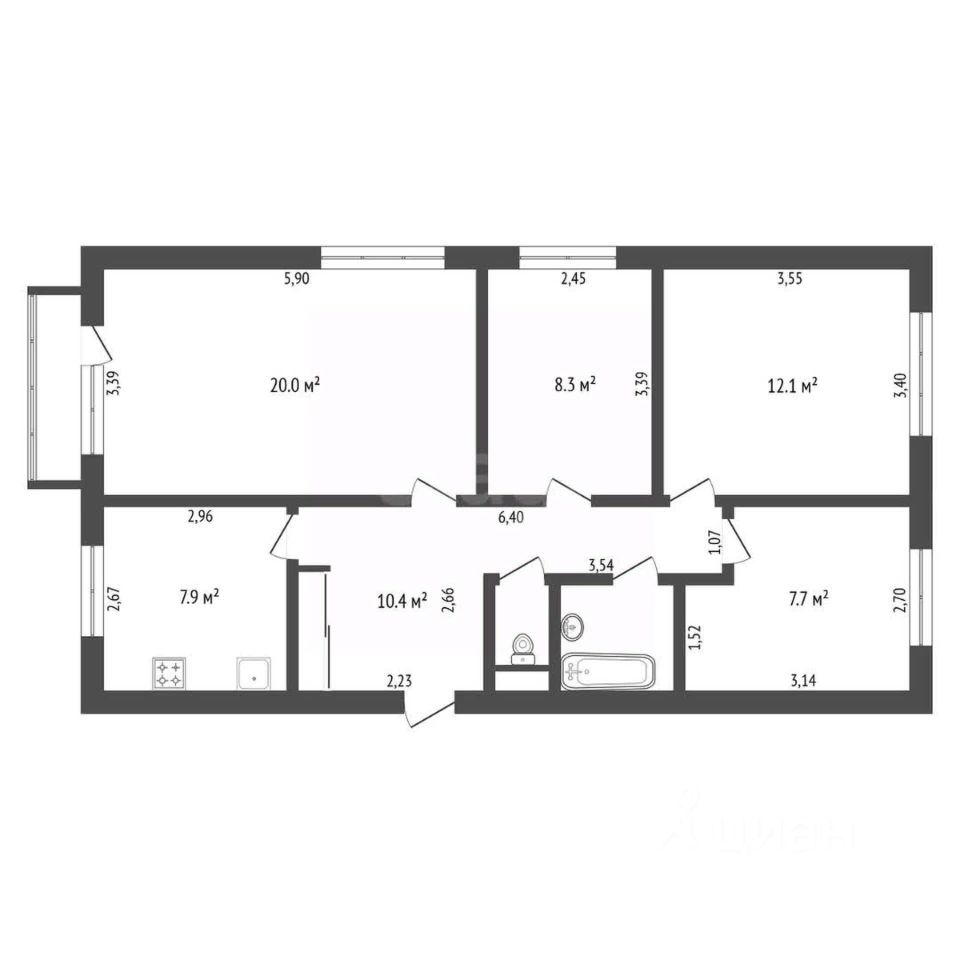 4 комнаты. В квартире выполнен косметический ремонт. Квартира очень теплая, поэтому поставили регулируемые краны на батареях.