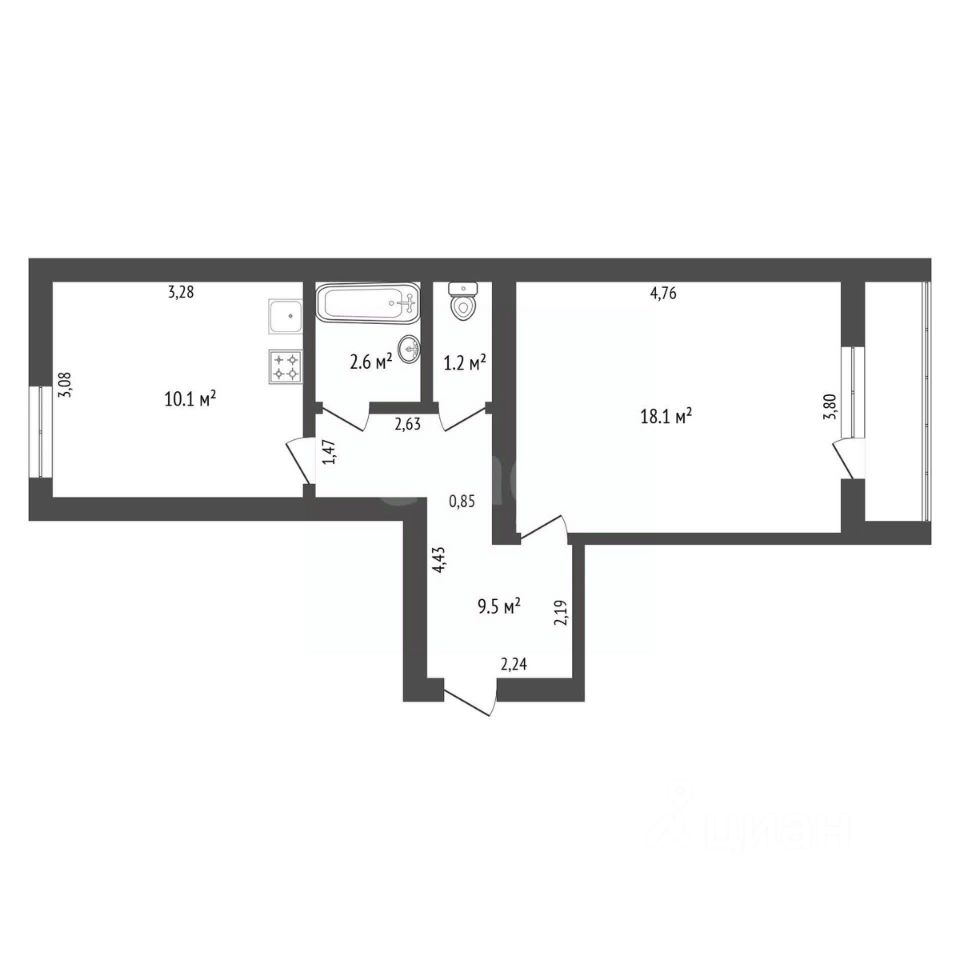 Санузел раздельный, что большая редкость для 1 комнатных квартир. Имеется застеклённая лоджия. Большая просторная кухня 10,1 кв.м.