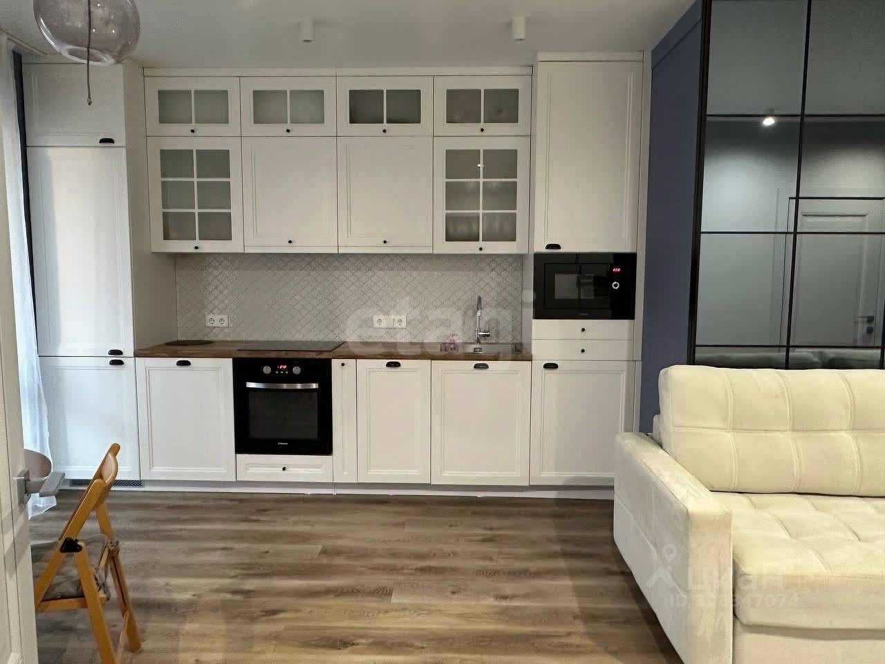 Кухня: встроенная с духовым шкафом и варочной поверхностью — остается при продаже, а также частично мебель по договоренности.
