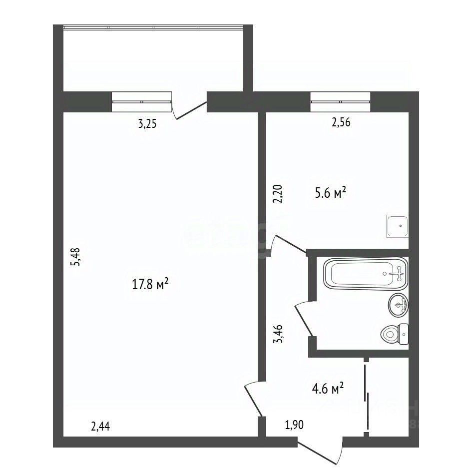 - Общая площадь: 32,9 кв. м.