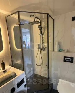 Санузел: стильный дизайн с качественной отделкой и современной душевой кабиной.