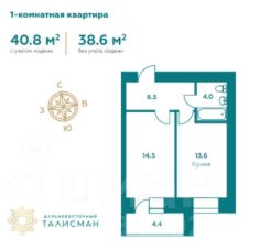 Площадь квартиры (с холодными помещениями) 40,80 кв.м.,