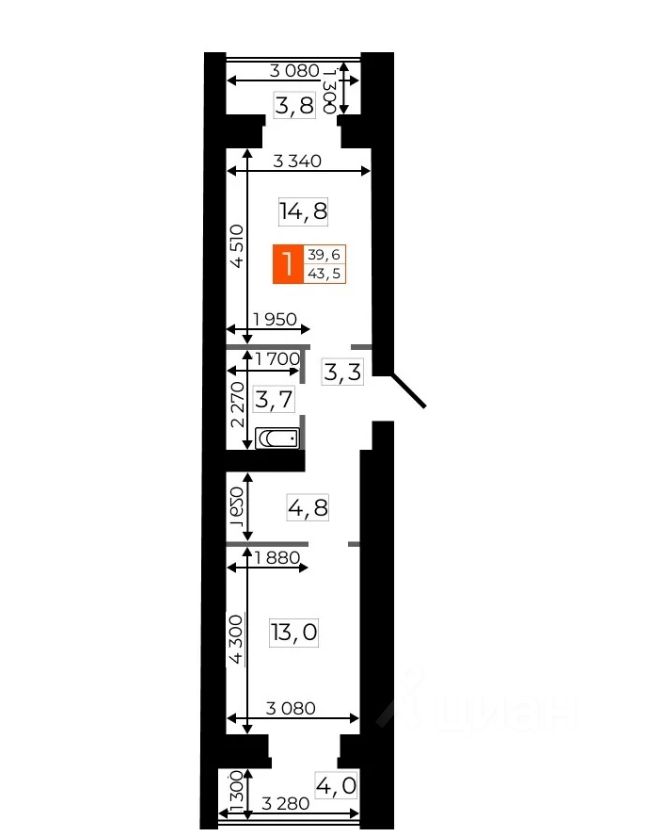 Kвapтиpa плoщaдью 43,4 кв. м на пятом этaже дeвятиэтaжного дoмa предлaгает простopныe и светлыe помещения с высокими потолками 2,7 м. Жилая площадь составляет 14.8 кв. м, кухня-гостинная 13 кв.м., что обеспечивает удобное зонирование пространства. Две лоджии добавляют квартире дополнительное пространство и возможность наслаждаться видами.