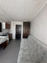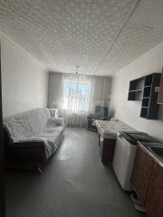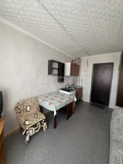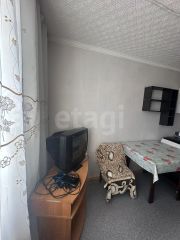 Помещение выходит на южную сторону, оно светлое и теплое. Комната полностью обустроена для комфортного проживания: есть кухонный гарнитур с водой, холодильник, стиральная машина, диван, стол, телевизор и шкаф.