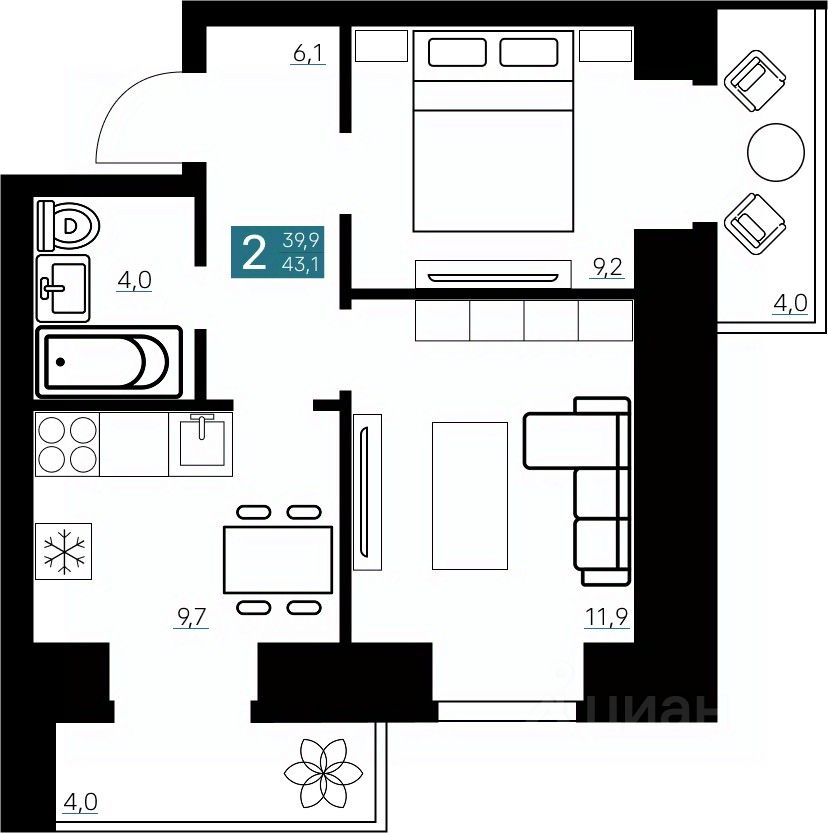 43,1 м²